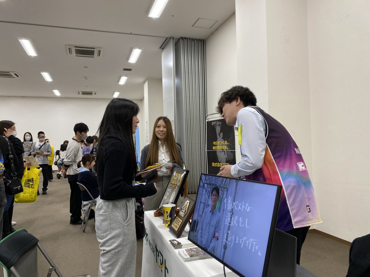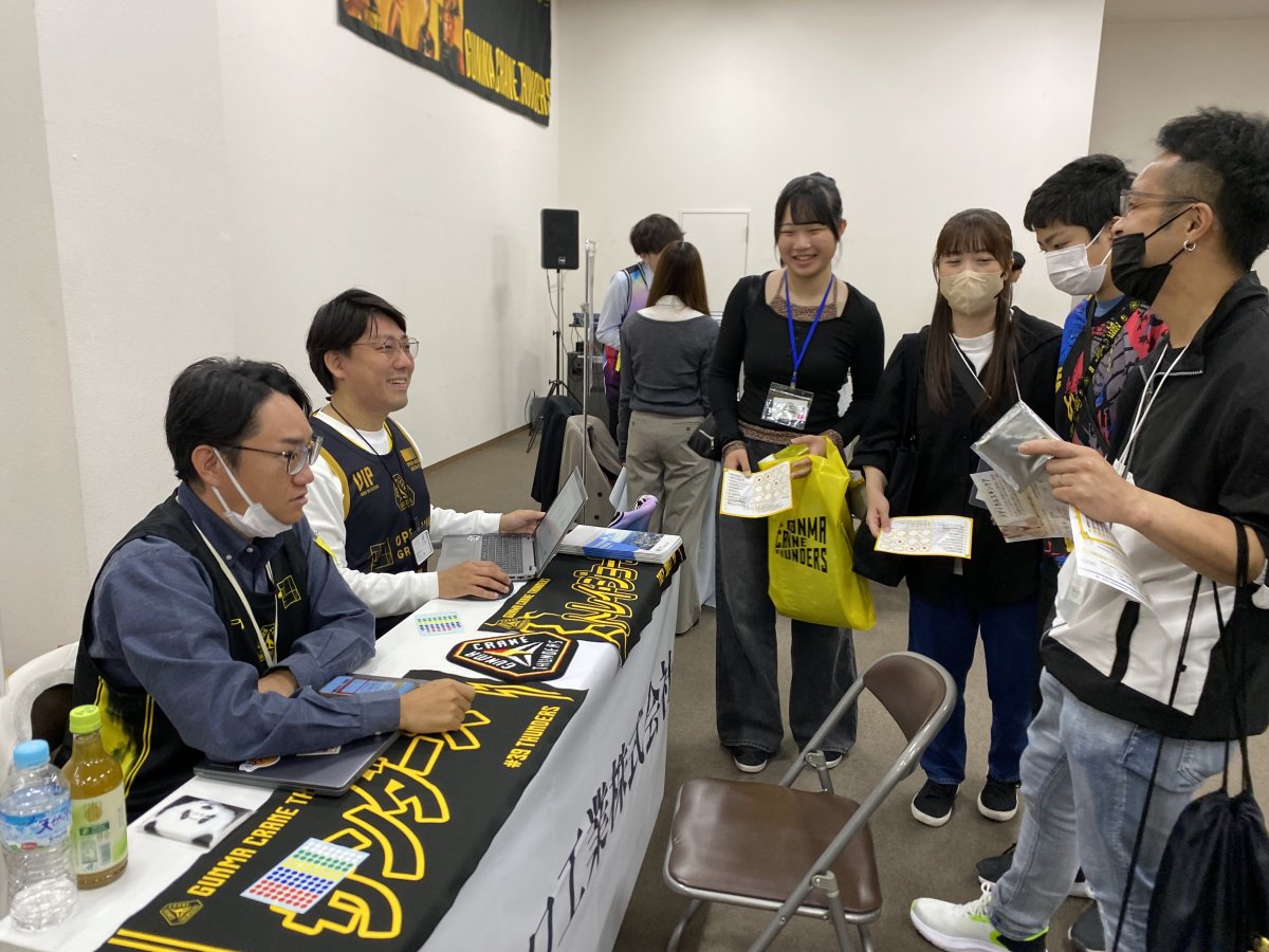 企業担当者は、サンダーズのユニフォームを来てブースに立ちます👚